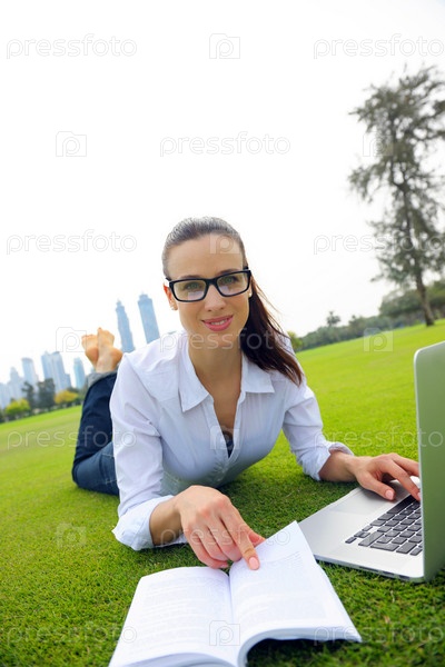 Женщина с ноутбуком в парке