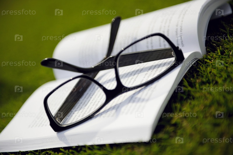 Очки и книга на траве
