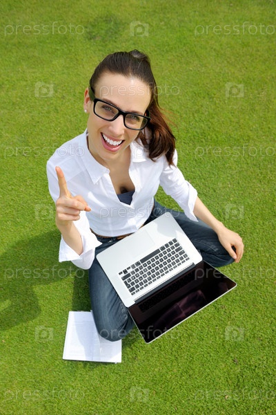 Женщина с ноутбуком в парке