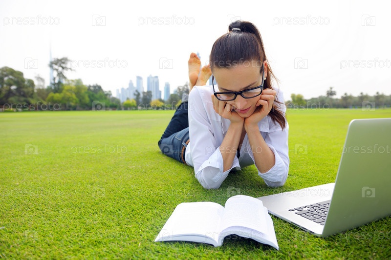Женщина с ноутбуком в парке