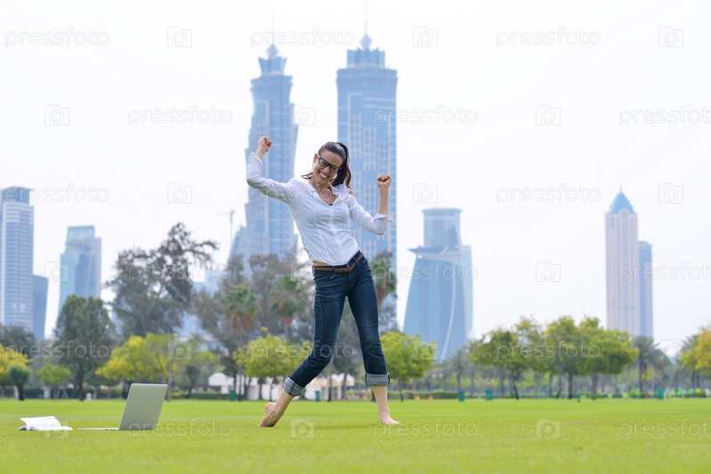 Женщина с ноутбуком в парке