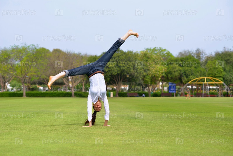 Молодая женщина, прыгающая в парке