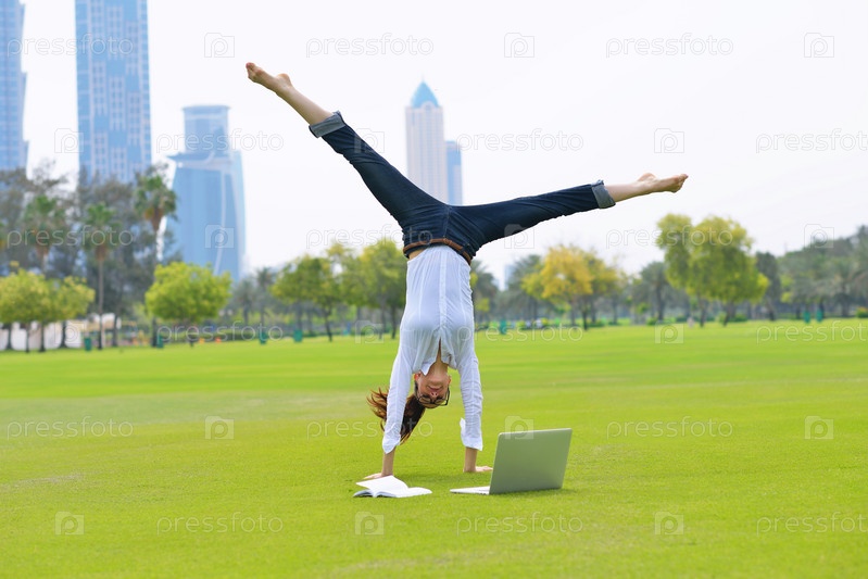 Женщина с ноутбуком в парке