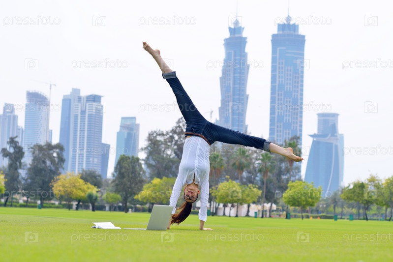 Женщина с ноутбуком в парке