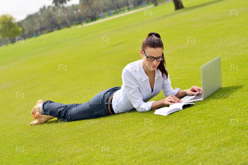 Женщина с ноутбуком в парке