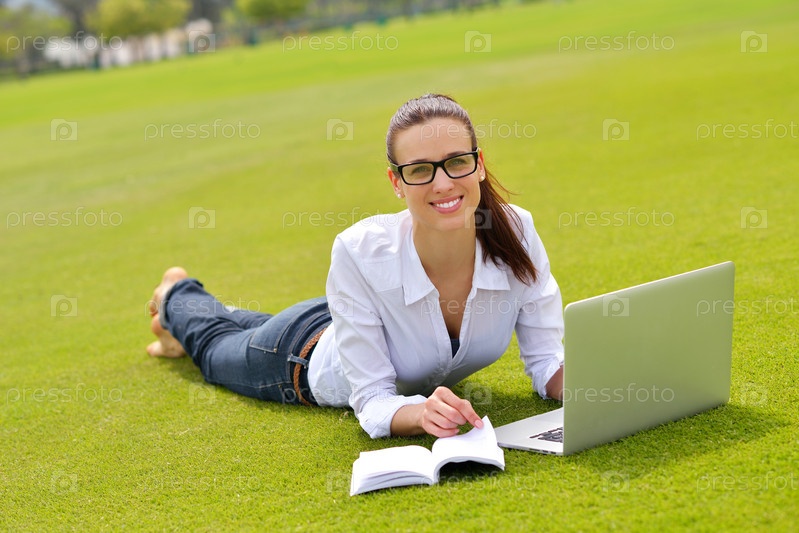 Женщина с ноутбуком в парке