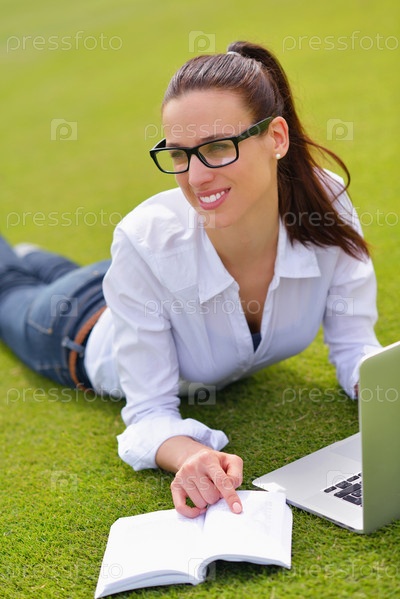 Женщина с ноутбуком в парке