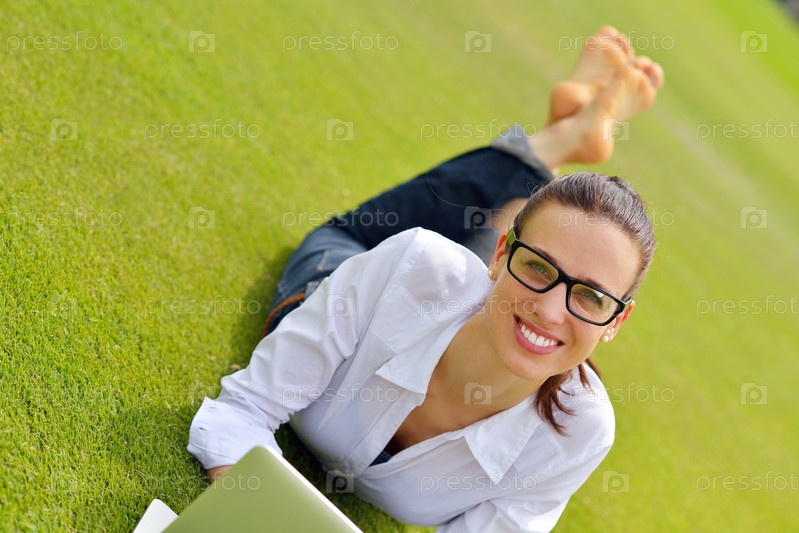 Женщина с ноутбуком в парке
