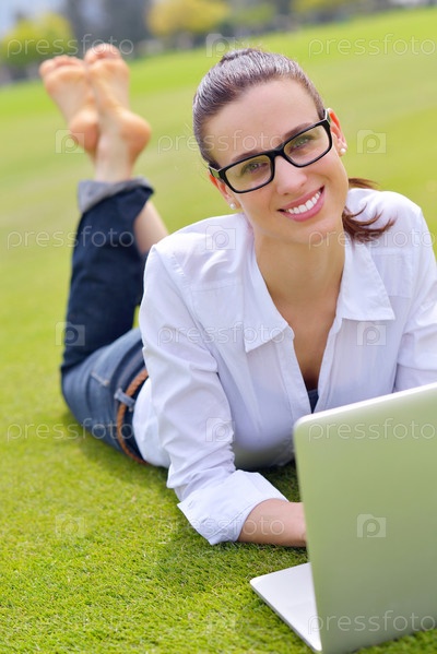 Женщина с ноутбуком в парке