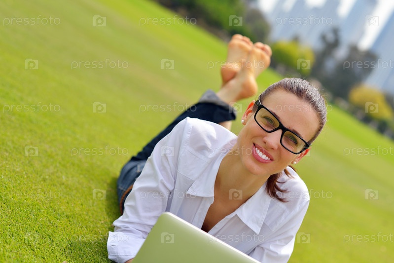 Женщина с ноутбуком в парке