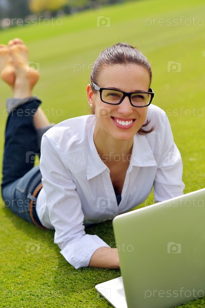 Женщина с ноутбуком в парке