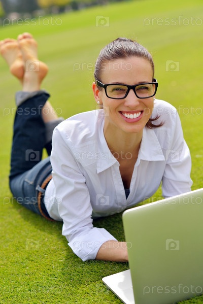 Женщина с ноутбуком в парке