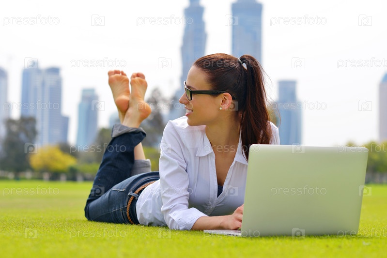 Женщина с ноутбуком в парке