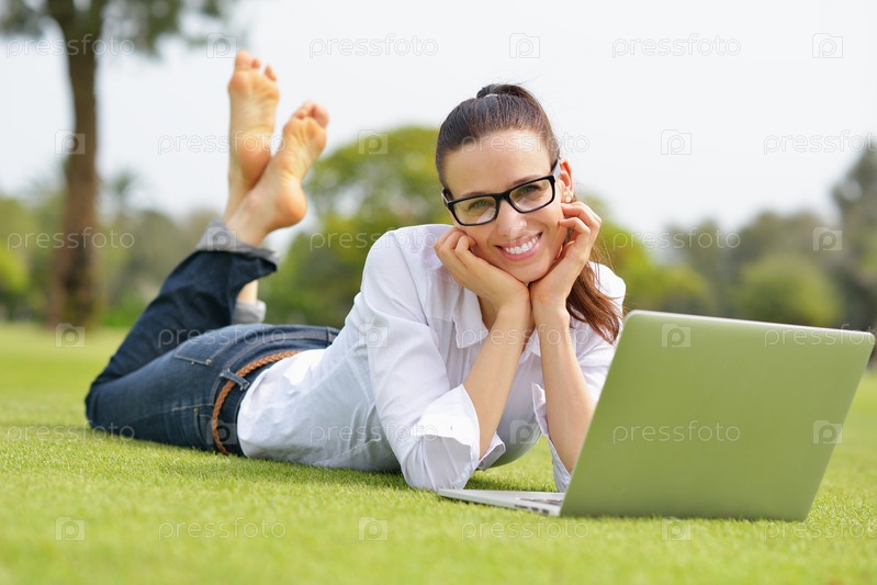 Женщина с ноутбуком в парке