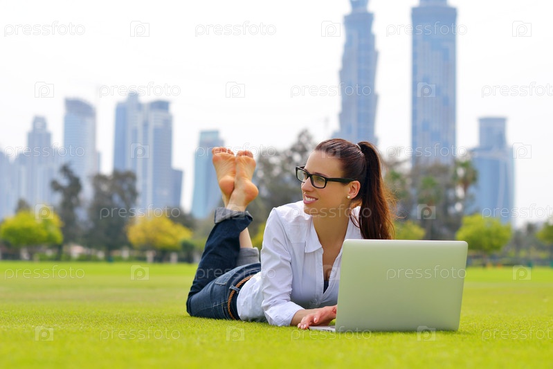 Женщина с ноутбуком в парке