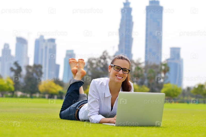 Женщина с ноутбуком в парке