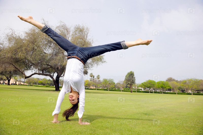 Молодая женщина, прыгающая в парке
