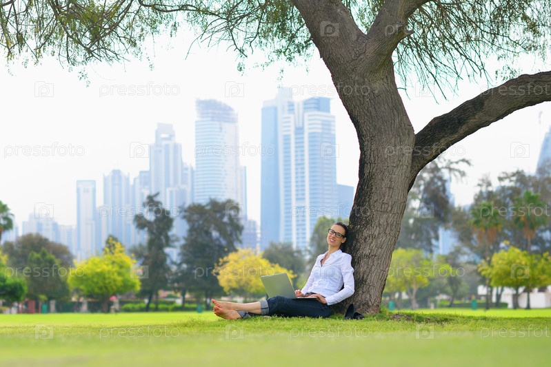 Женщина с ноутбуком в парке
