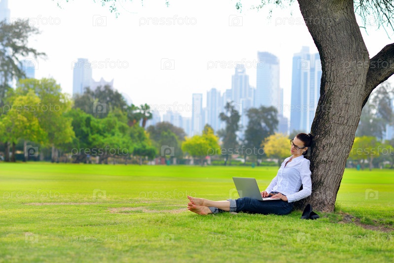 Женщина с ноутбуком в парке