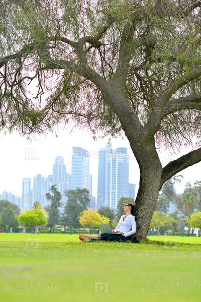 Женщина с ноутбуком в парке