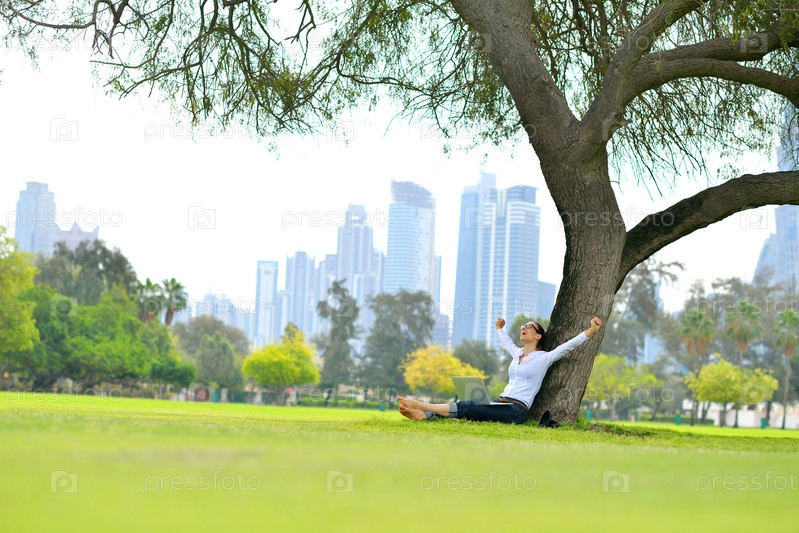 Женщина с ноутбуком в парке
