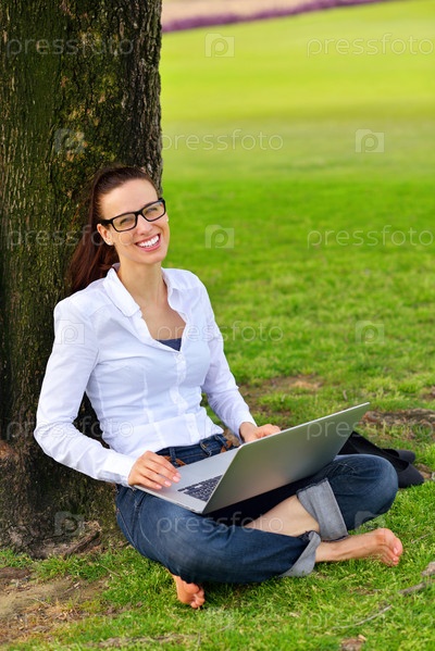 Женщина с ноутбуком в парке