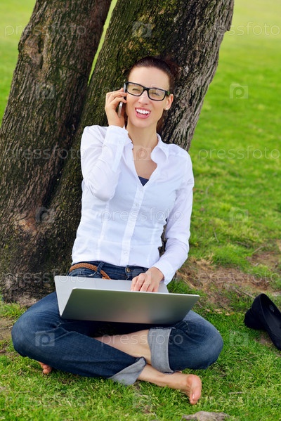 Женщина с ноутбуком в парке