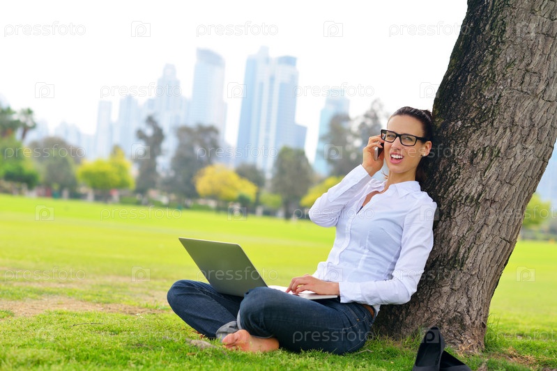 Женщина с ноутбуком в парке