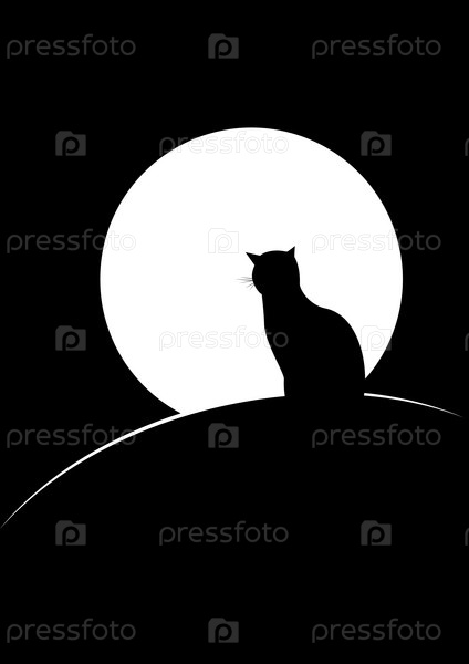 Силуэт черной кошки, смотрящей на луну