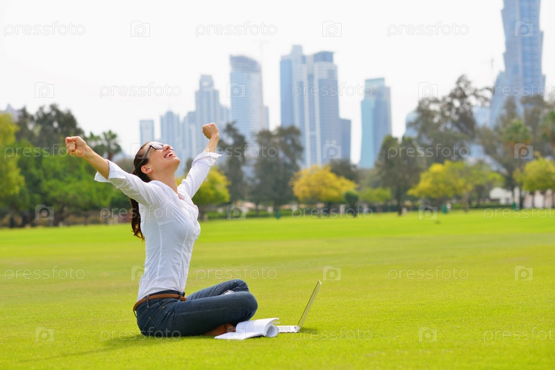 Женщина с ноутбуком в парке