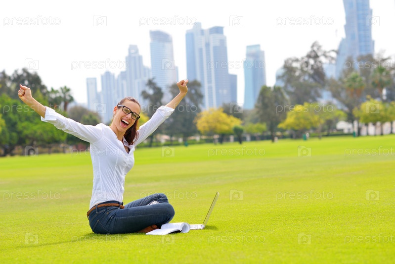 Женщина с ноутбуком в парке