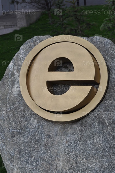 Постамент с символикой Интернета на фоне зеленой травы