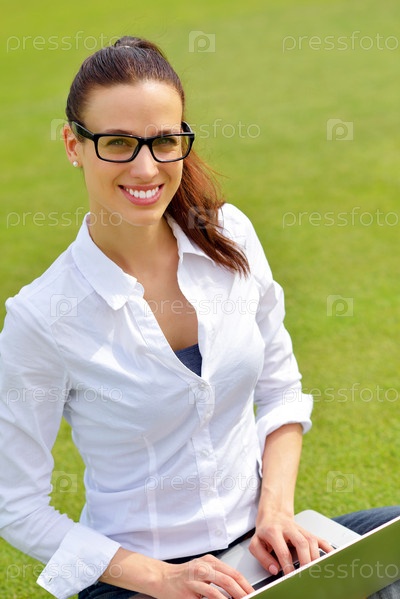 Женщина с ноутбуком в парке