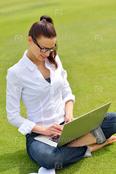 Женщина с ноутбуком в парке
