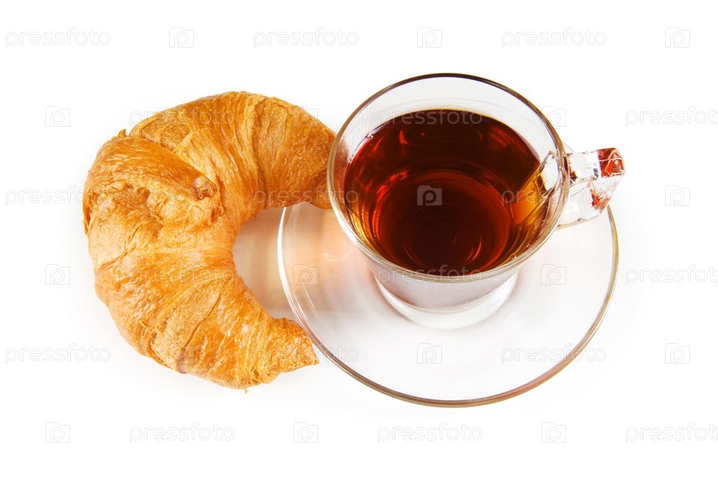 Аппетитный круассан и чашка чая