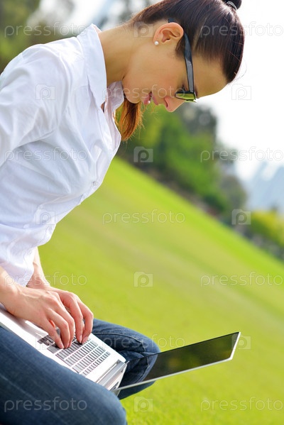 Женщина с ноутбуком в парке
