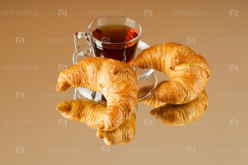Аппетитные круассаны и чашка чая