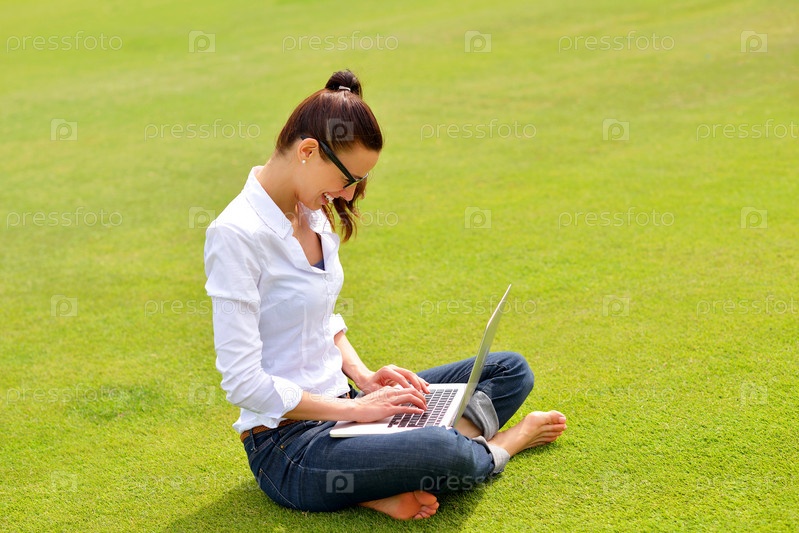 Женщина с ноутбуком в парке