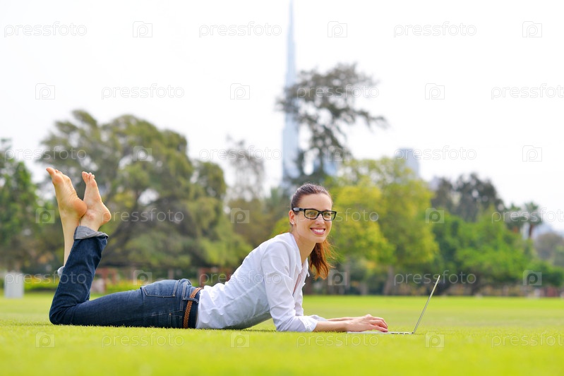 Женщина с ноутбуком в парке
