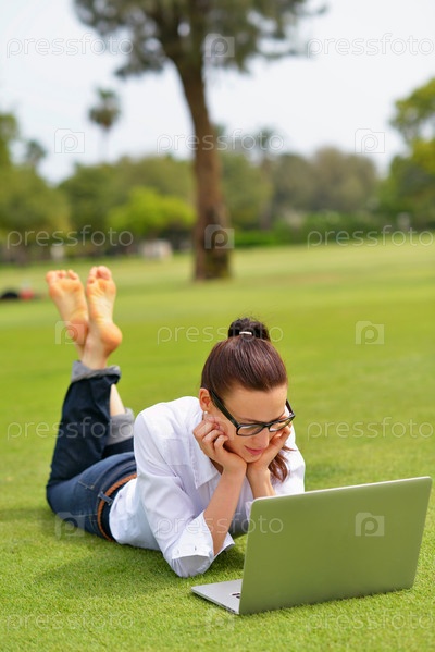 Женщина с ноутбуком в парке