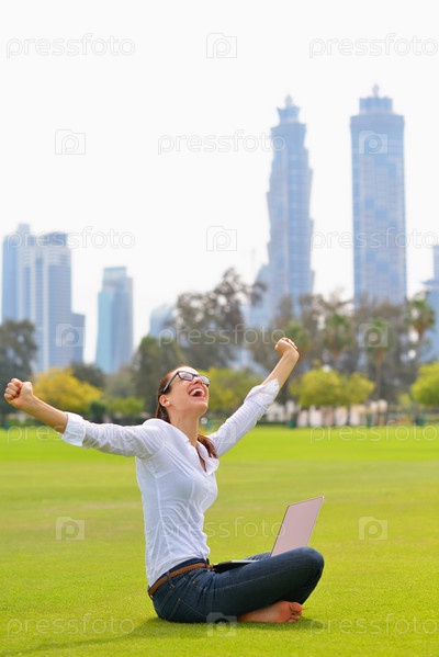 Женщина с ноутбуком в парке