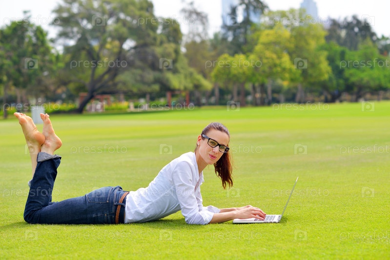 Женщина с ноутбуком в парке