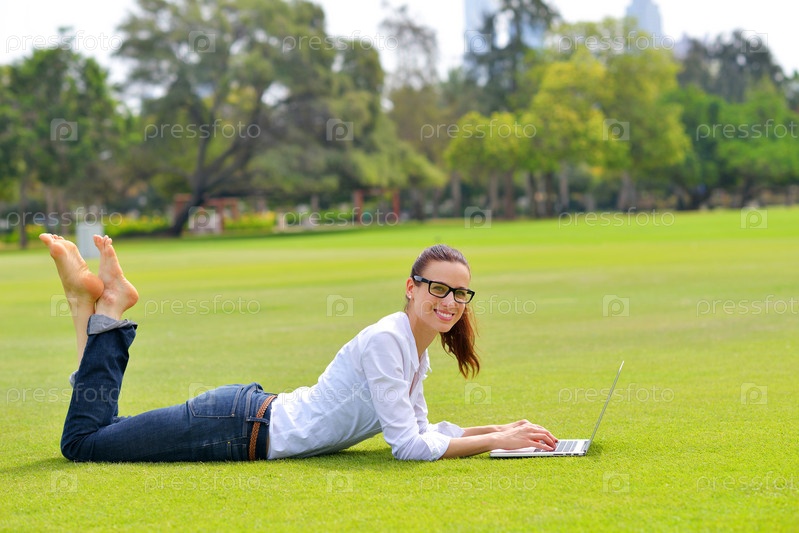 Женщина с ноутбуком в парке