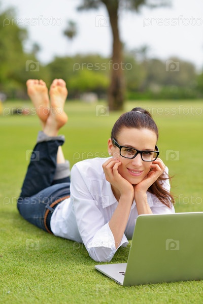 Женщина с ноутбуком в парке