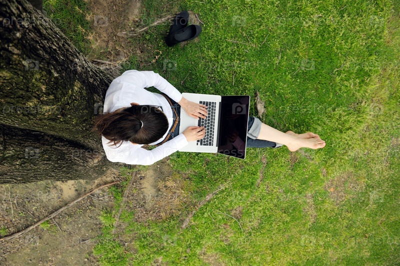 Женщина с ноутбуком в парке
