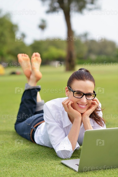 Женщина с ноутбуком в парке
