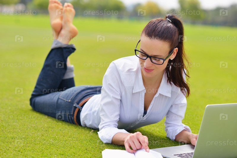 Женщина с ноутбуком в парке
