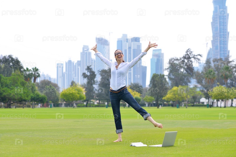 Женщина с ноутбуком в парке