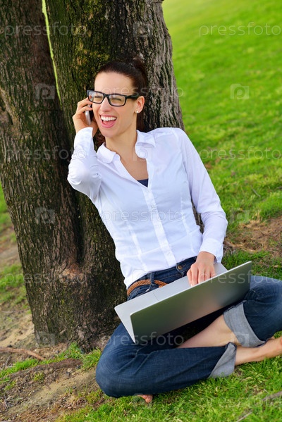 Женщина с ноутбуком в парке
