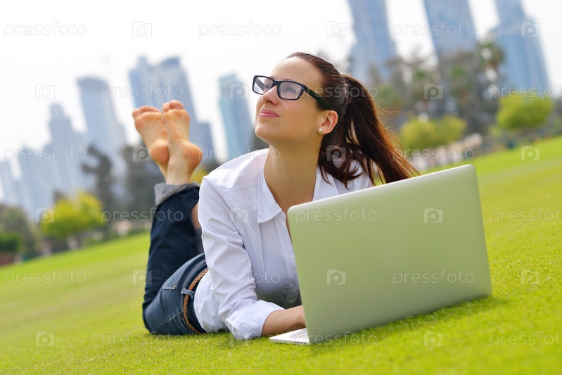 Женщина с ноутбуком в парке